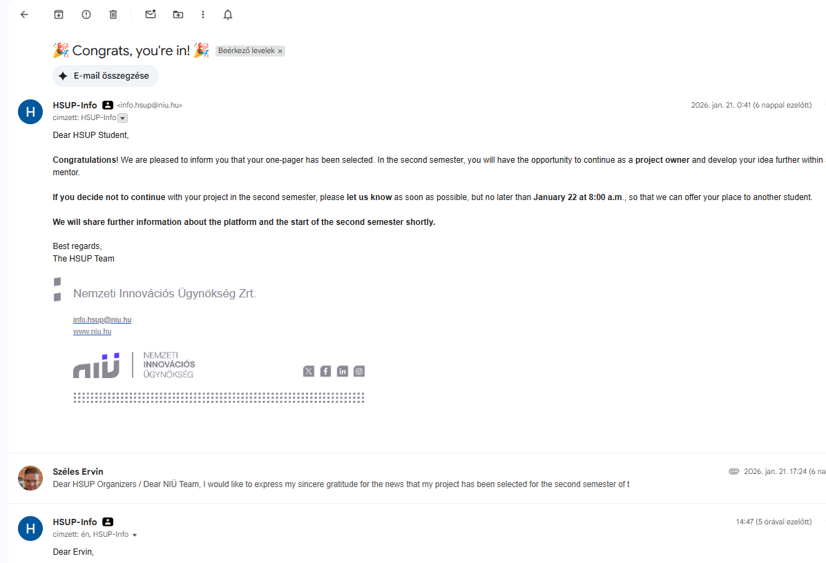 “The project’s architectural one-pager was selected by the professional jury of the Hungarian National Innovation Agency (NIÜ) for the Hungarian Startup University Program (HSUP), recognizing its innovative potential in cloud automation.”